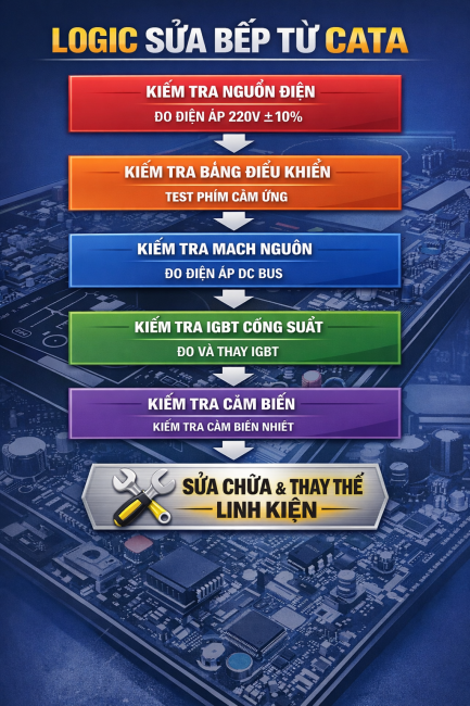 – Sửa bếp điện từ Cata bị hỏng mạch điện điều khiển